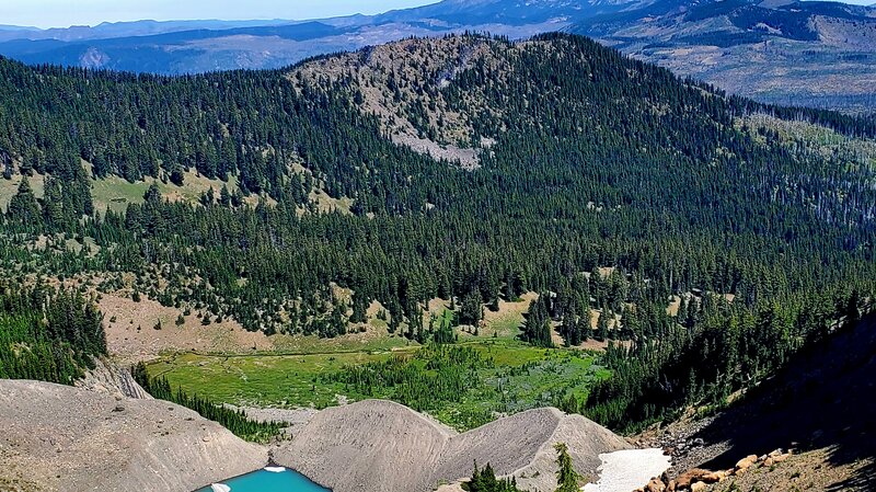 The heavy snow experienced during the winter of 2024-2025 delayed the opening of the most popular Central Oregon hikes until later in the summer. However, the heavy snow also provided extra moisture in the soil which has resulted in a fabulous wildflower season. Among the best areas for wildflowers in the Central Oregon Cascades is Canyon Meadow, part of the hike to the base of Three Fingered Jack. Canyon Meadow hike is a moderate loop that takes hikers from Jack Lake to the meadow and then returns through the burned forest resulting from 2003's B & B complex fire. However, for those wanting a more challenging hike, taking the unmaintained spur from Canyon Meadow to Three Fingered Jack provides for spectacular views and a tough scramble up the moraine of Jack Glacier (unofficial name) which is mostly gone. The aqua blue of the glacial lake was especially stunning the beginning of August. Hikers can climb the moraine until they reach the ridge connecting Three Fingered Jack with the unnamed colorful hoodoo next to it. The flat top of the ridge can be a great location for lunch or a snack before taking the slow trek down the moraine back to the more established trail. There is a side trail that can be taken to the upper meadows following the stream which exits the moraine. The upper meadow was stunning with blooming wildflowers the beginning of August. Once the lower meadow is reached, the loop back to Jack Lake can be taken, although much of this is in burned forest. Another option is to return the way hikers arrived at Canyon Meadow rather than continuing the loop through the burned forest. This will add elevation and distance, however.
