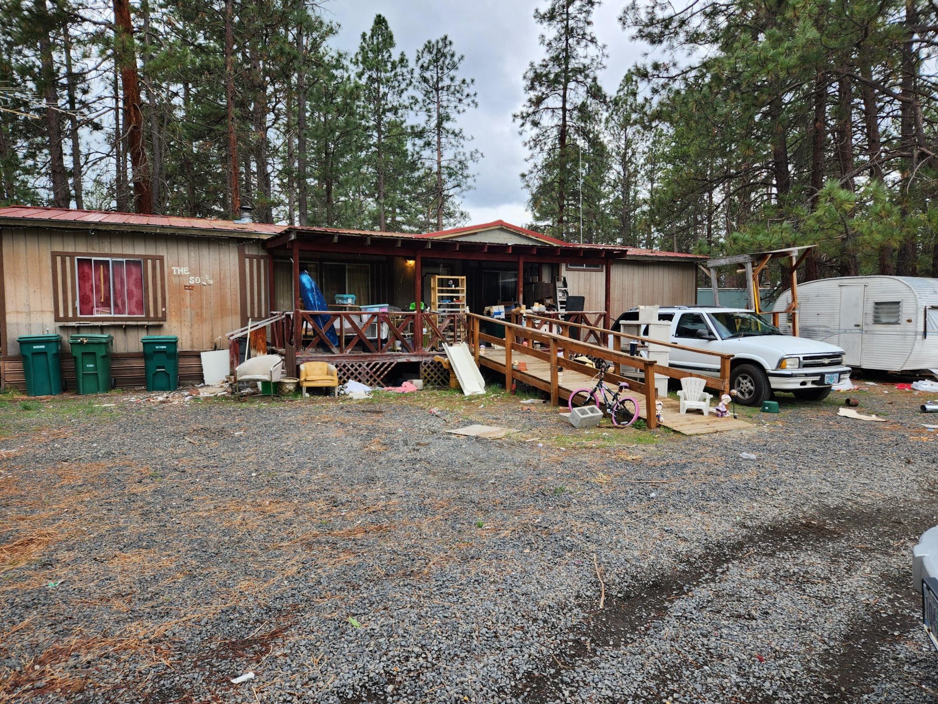 3/2 manufactured home with amenities that just needs some TLC. The back bedroom flooded and needs remodeling. Otherwise, the rest of the home appears to be in good shape. Nice open floor plan. The property does have two very old, manufactured homes that the county has deemed storage. Numerous sheds. Pump house. There is a shared with the neighbor in the back. The owner is selling As Is. He will not be able to do any repairs. He will not be able to clean up the debris.